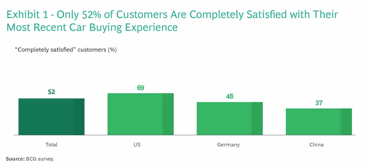 "According to a recent BCG consumer survey, almost half of respondents who have recently purchased a car were dissatisfied with the experience."