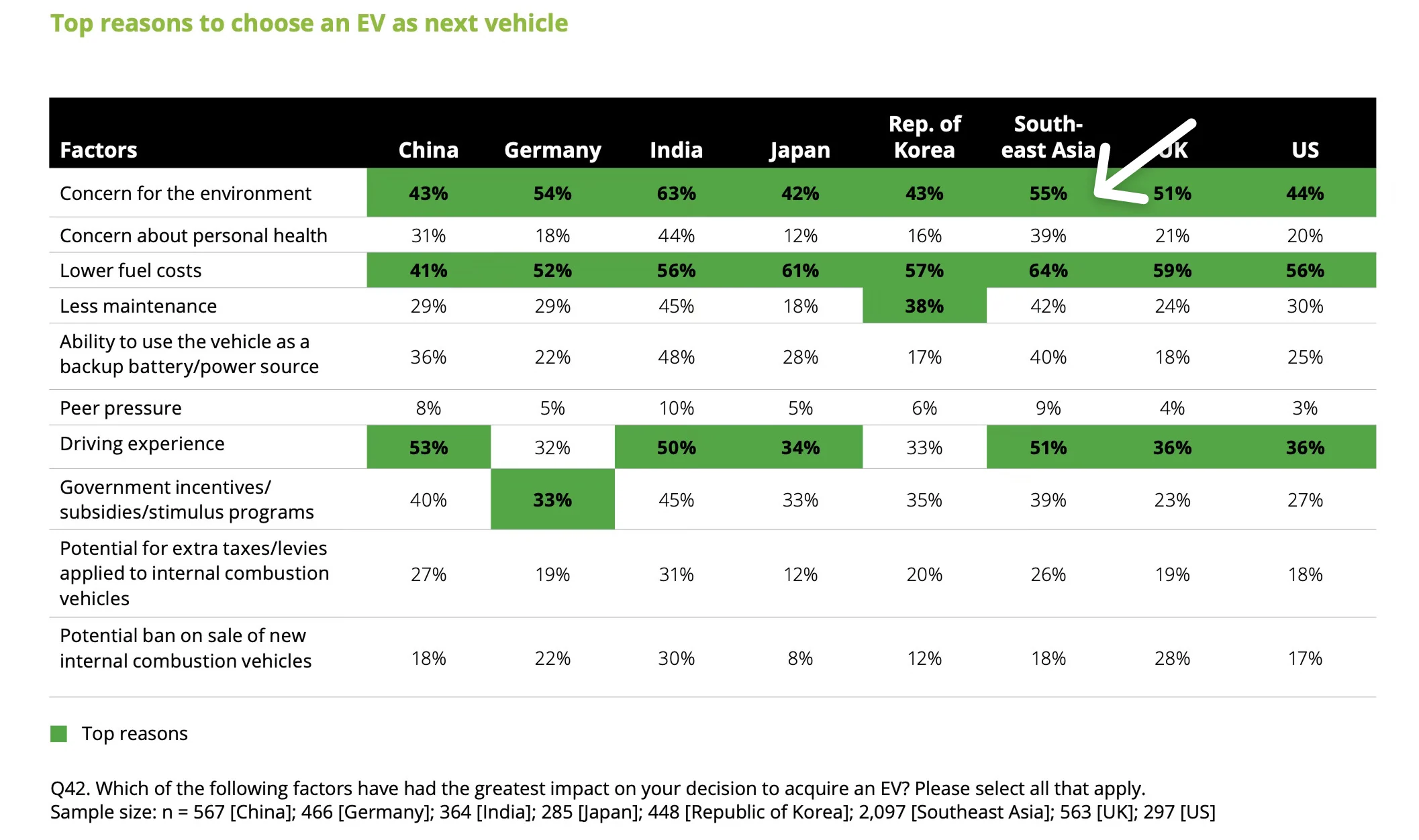 Exhibit B - Deloitte, in its Global Automotive Consumer Study, has consistently ranked “concerns for the environment” among the top reasons “to choose an EV as the next vehicle.” In the latest 2025 version, 55% of respondents in Southeast Asia selected this option—the second-highest score, behind lower fuel costs.